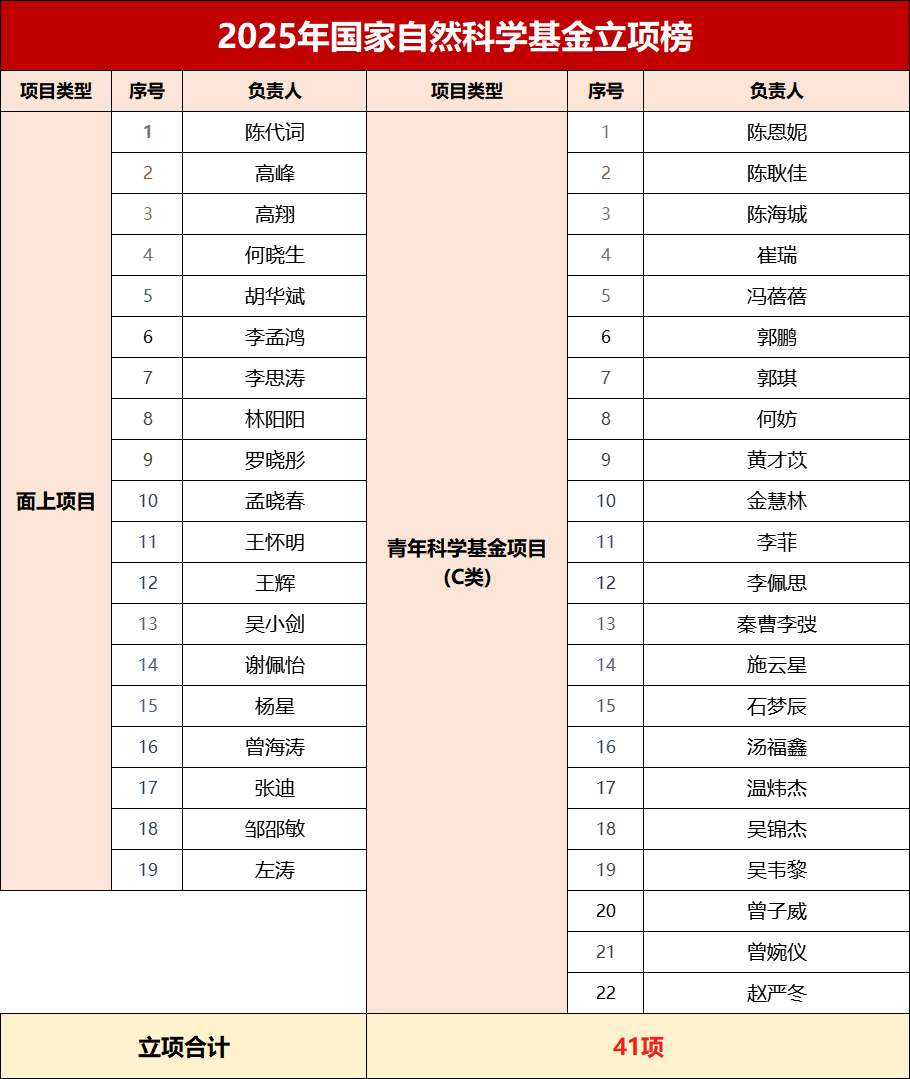 下面和中六君一起看看2025年我院立项的国家自然科学基金项目~