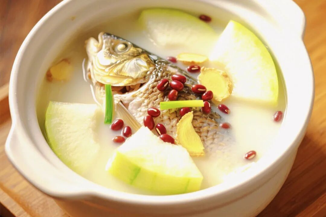 材料:赤小豆60克、冬瓜750克、生鱼2条、猪瘦肉150克、生姜3片