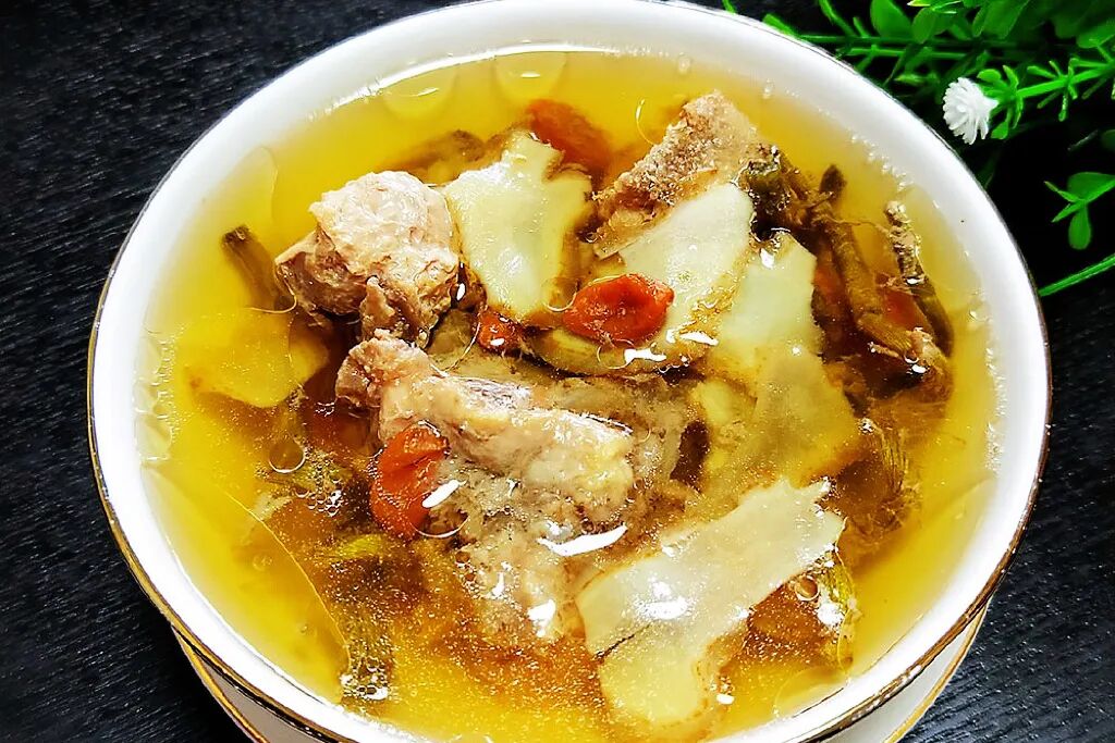 材料:猪脊骨500克、土茯苓60克、黄芪30克、生姜3片