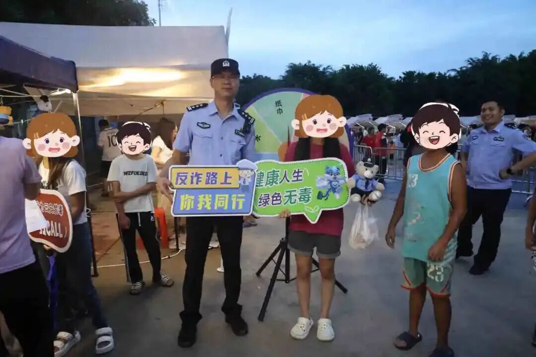 同时,还别出心裁地将“法治宣传小摊”摆到赛场周边,民警通过趣味问答、派发宣传单张、转盘游戏等方式,积极向现场群众宣传禁毒、反诈、防溺水、道路交通安全等知识,全面提高群众安全防范意识,成为赛场外一道独特的平安风景线。