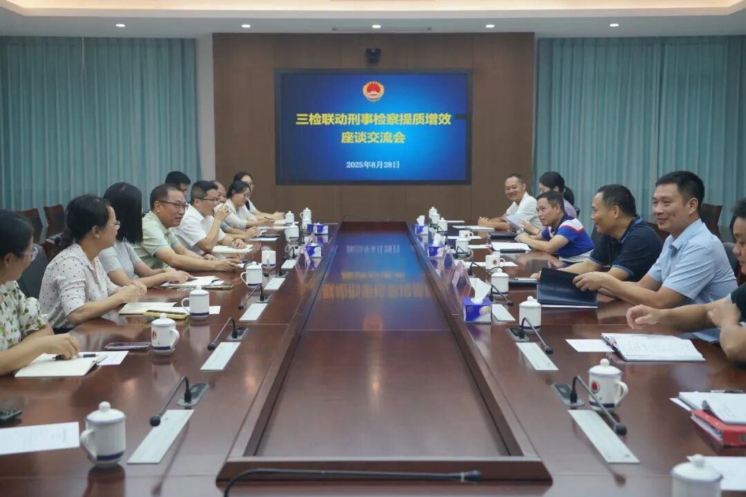 座谈会上,三方围绕刑事检察工作核心议题展开深入交流。首先,各院详细分享了 2025 年以来刑事检察工作的办案核心数据,既展示了各自在案件办理、流程优化等方面的亮点工作,也梳理了当前工作中存在的突出问题。随后,针对犯罪治理、刑事 “挂案” 清理、违规异地执法和趋利性执法司法专项监督,以及性侵案件、“两卡” 案件、洗钱犯罪案件办理等重点领域的难点问题,与会人员结合工作实际展开热烈讨论,积极分享实践中的成熟经验与创新做法,为破解工作堵点建言献策。