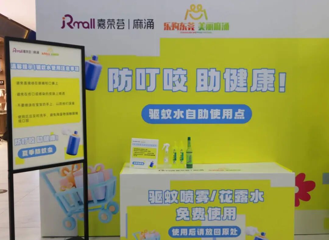 暖心服务更延伸至商场的公共空间。据麻涌·嘉荣荟商管经理卢先生介绍,“除了常规的清积水、灭蚊子,我们在商场人流量大的区域增设了自助驱蚊喷雾,方便顾客随时使用。喷雾采用安全有效的驱蚊成分,每周换新,确保顾客安心。同时,每周的全面消杀和日常巡查多管齐下,全力保障购物环境安全。”