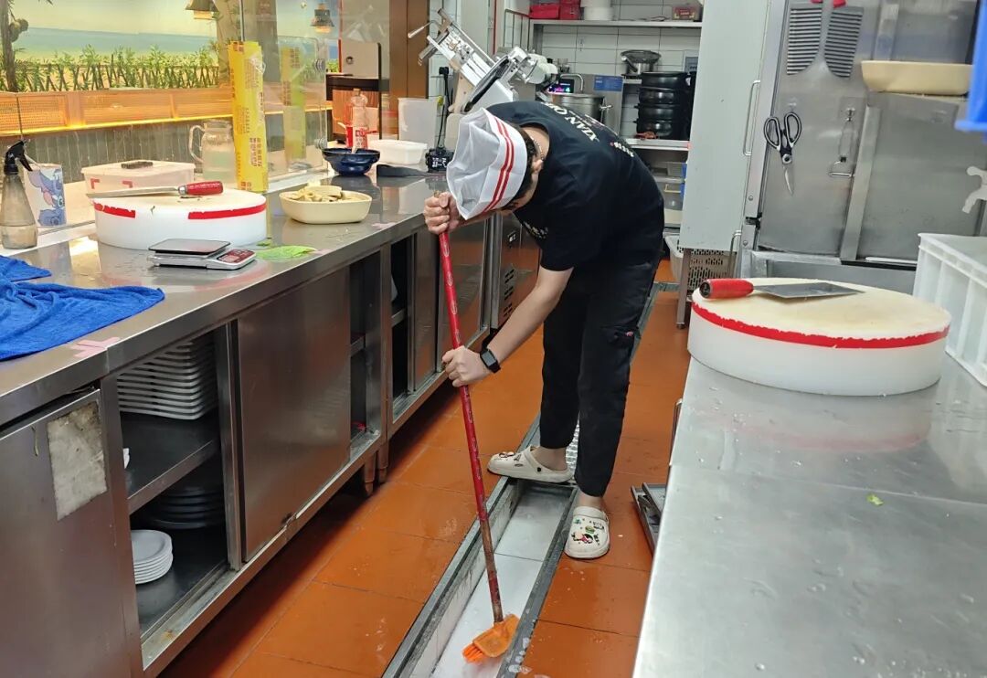 各商户也主动担当,积极响应号召,扎实做好“门前三包”工作。“我们店每天都会清洁,厨房内所有餐具按规定清洗和消毒,特别是下水道,每晚都会彻底清洗一次,餐厨垃圾也有专人每日清运。”餐饮店店长曹先生表示。