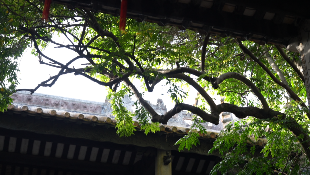 沙湾的诸多音乐历史遗迹中,最具有传奇色彩的无疑是位于沙湾安宁西街的三稔厅。三稔厅约建于清嘉庆年间,属于何氏大宗祠“留耕堂”的一座分支祠堂。踏进大门,一个并不算大的院子四四方方、恬然宁静,院内两边各有一株郁郁葱葱的老树,一边是桂花树,另一边是三稔树,微风吹过,粉色花蕊掉落在地。