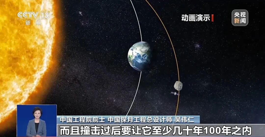 具体来说,就是在距地球1000万公里左右的地方,对迎面来的小天体发射动能撞击器,交会后争取能够产生极大的动能从而改变小天体的轨道。目前计划能够改变3到5厘米的轨道,让小行星至少几十年到100年之内不能够再撞击地球。