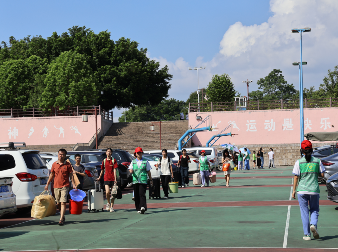 校园内彩旗招展,各迎新点装扮得温馨而醒目。清晨时分,老师和学生志愿者早已守候在各个服务点,用温暖的笑容迎接每一位新同学。他们或耐心解答疑问,或主动帮忙搬运行李,或细致指引报到路线,让新生们离家的忐忑化作归家的安心。学校提前统筹规划,各部门通力协作,从校园环境布置到报到流程优化,全力营造安全、顺畅、温馨的迎新环境。