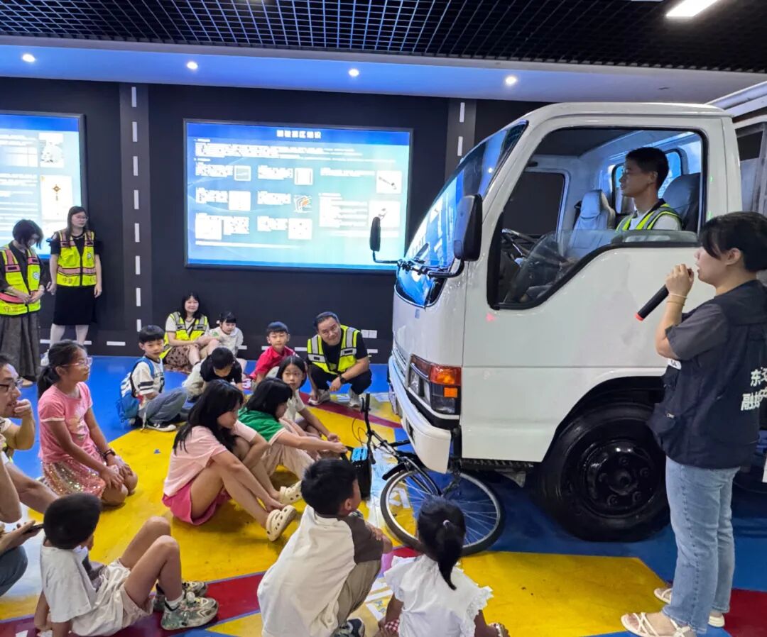 “小朋友们,现在请站到货车的车头、车尾、侧方来!”随着讲解员的指令,孩子们陆续站进模拟小货车的“盲区”。驾驶座上的家长俯身观察,却发现:“车头下方看不到!”“车尾完全被挡住了!”“侧方后视镜里根本没有孩子的影子!”