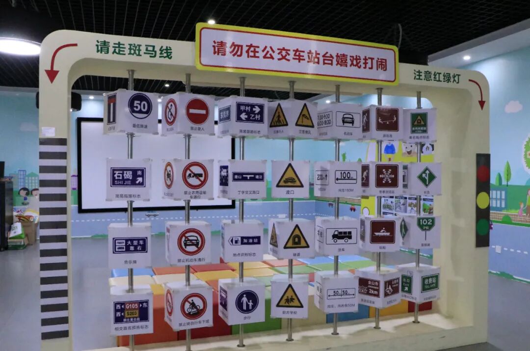 如果说二楼是“安全警示课”,那三楼的“交通标志识别区”就是孩子们的“快乐老家”!