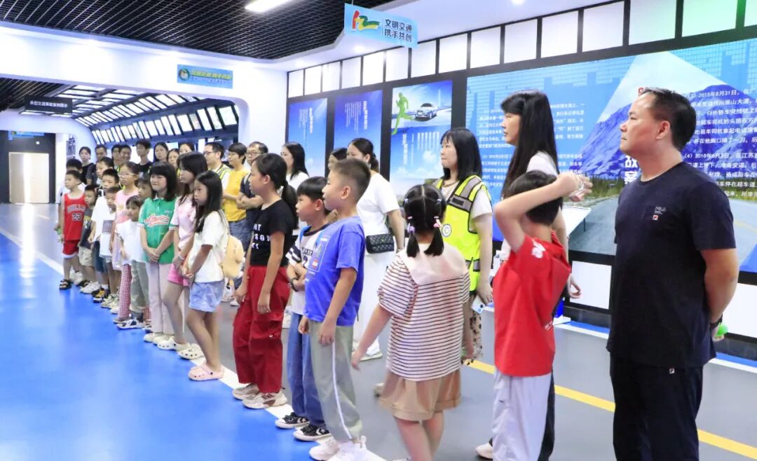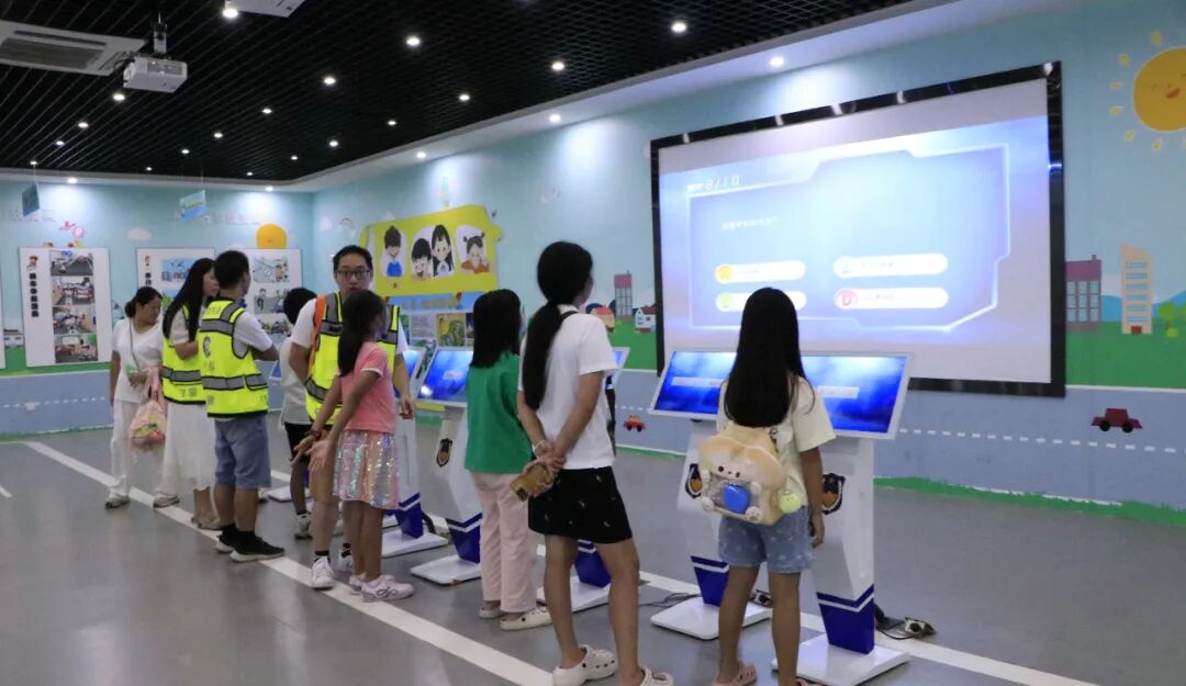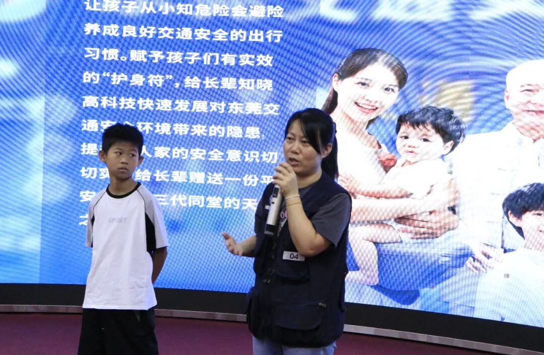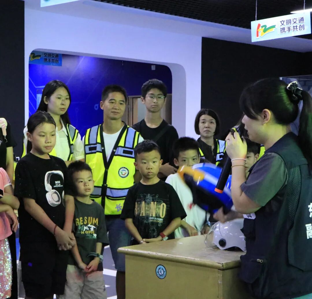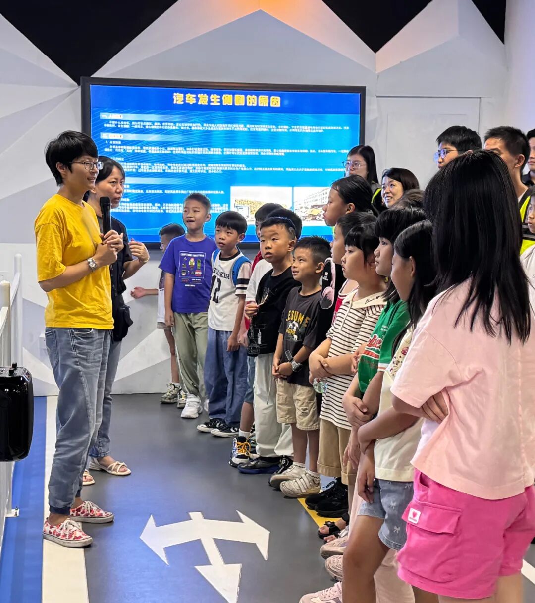 在多媒体功能厅,一段段触目惊心的真实事故视频让现场瞬间安静——“儿童翻越护栏被车撞”“酒驾导致连环撞”的画面,搭配讲解员对东莞交通现状的解读:“涉及儿童的交通事故有很多起,主要原因是闯红灯、不走斑马线。”一句“安全无小事,一个疏忽可能就是一个家庭的破碎”,让家长们和孩子们都握紧了手,也让孩子们瞪大了眼睛:原来“遵守交规”不是一句空话,而是实实在在的生命守护。