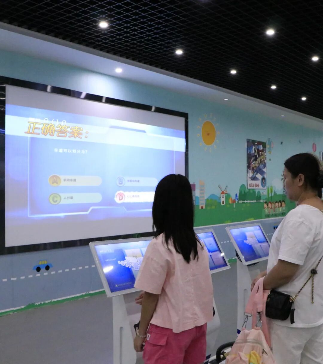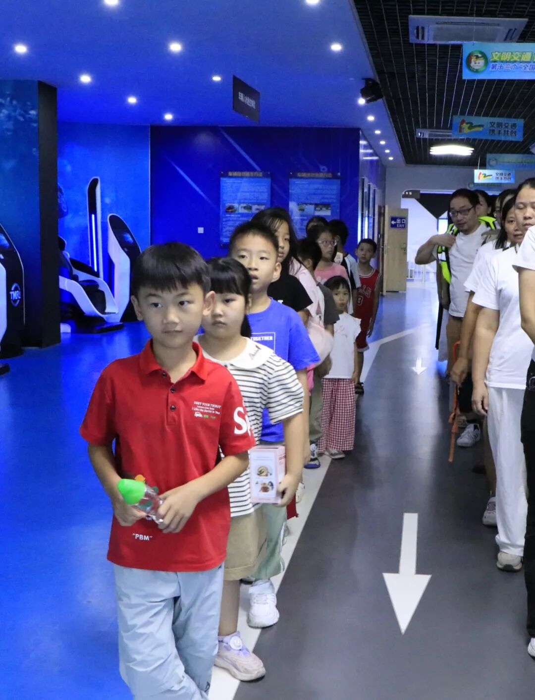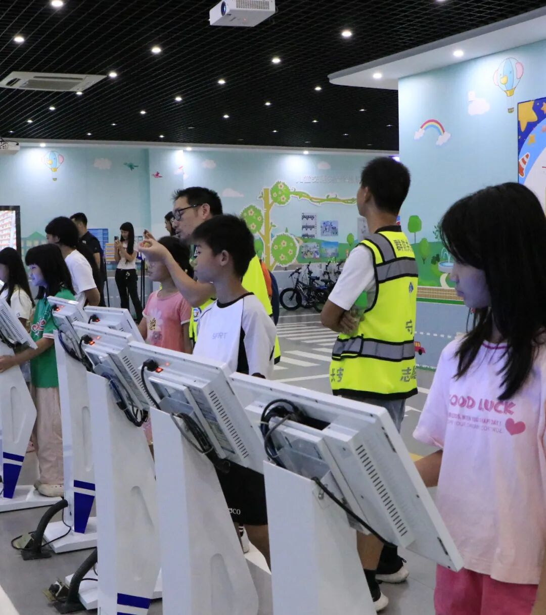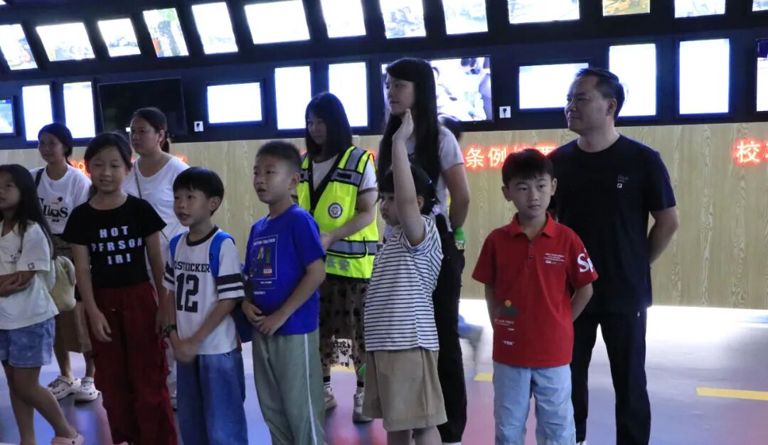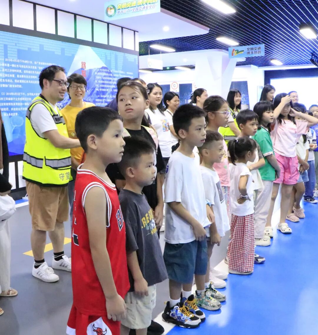 在多媒体功能厅,一段段触目惊心的真实事故视频让现场瞬间安静——“儿童翻越护栏被车撞”“酒驾导致连环撞”的画面,搭配讲解员对东莞交通现状的解读:“涉及儿童的交通事故有很多起,主要原因是闯红灯、不走斑马线。”一句“安全无小事,一个疏忽可能就是一个家庭的破碎”,让家长们和孩子们都握紧了手,也让孩子们瞪大了眼睛:原来“遵守交规”不是一句空话,而是实实在在的生命守护。