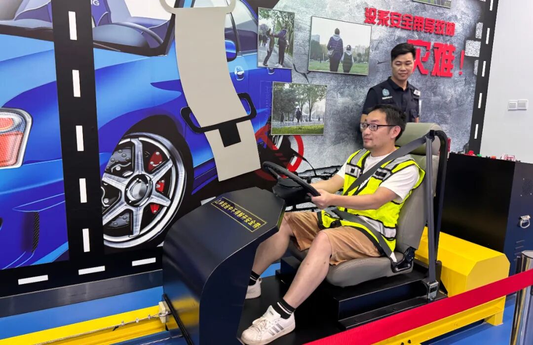 “砰!”一声轻响,模拟驾驶舱里的家长身体微微前倾——这是“10km/h低速碰撞”的体验;当速度是15km/h,呈现的效果又完全不一样,安全带瞬间收紧,牢牢“抱住”身体。仅仅是慢速度的体验都发出了巨大的声响,那真正在驾驶过程中的速度可想而知···“上车必系安全带,不分前后排!”讲解员趁热打铁,家长们的体验让大小朋友彻底明白:“系安全带不是‘任务’,是保护自己的‘盔甲’,小细节里藏着大安全!”