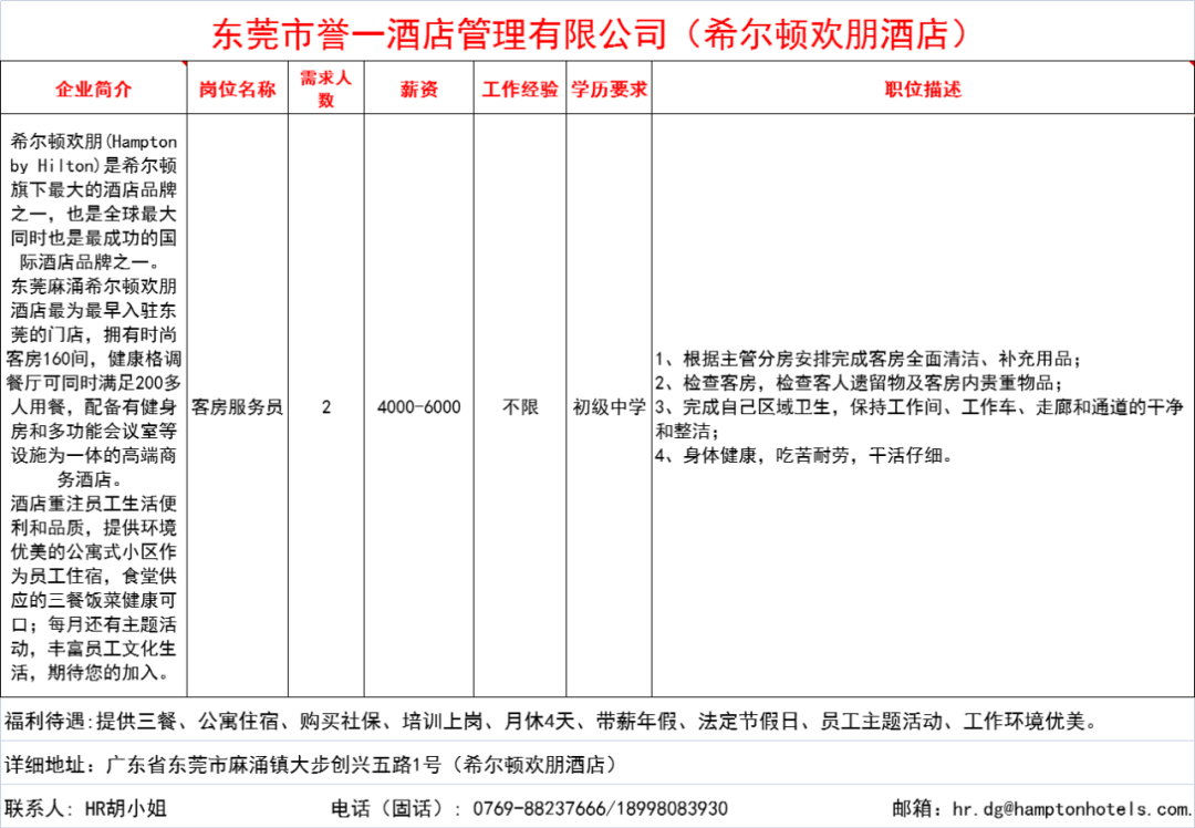 39、东莞市誉一酒店管理有限公司(希尔顿欢朋酒店)