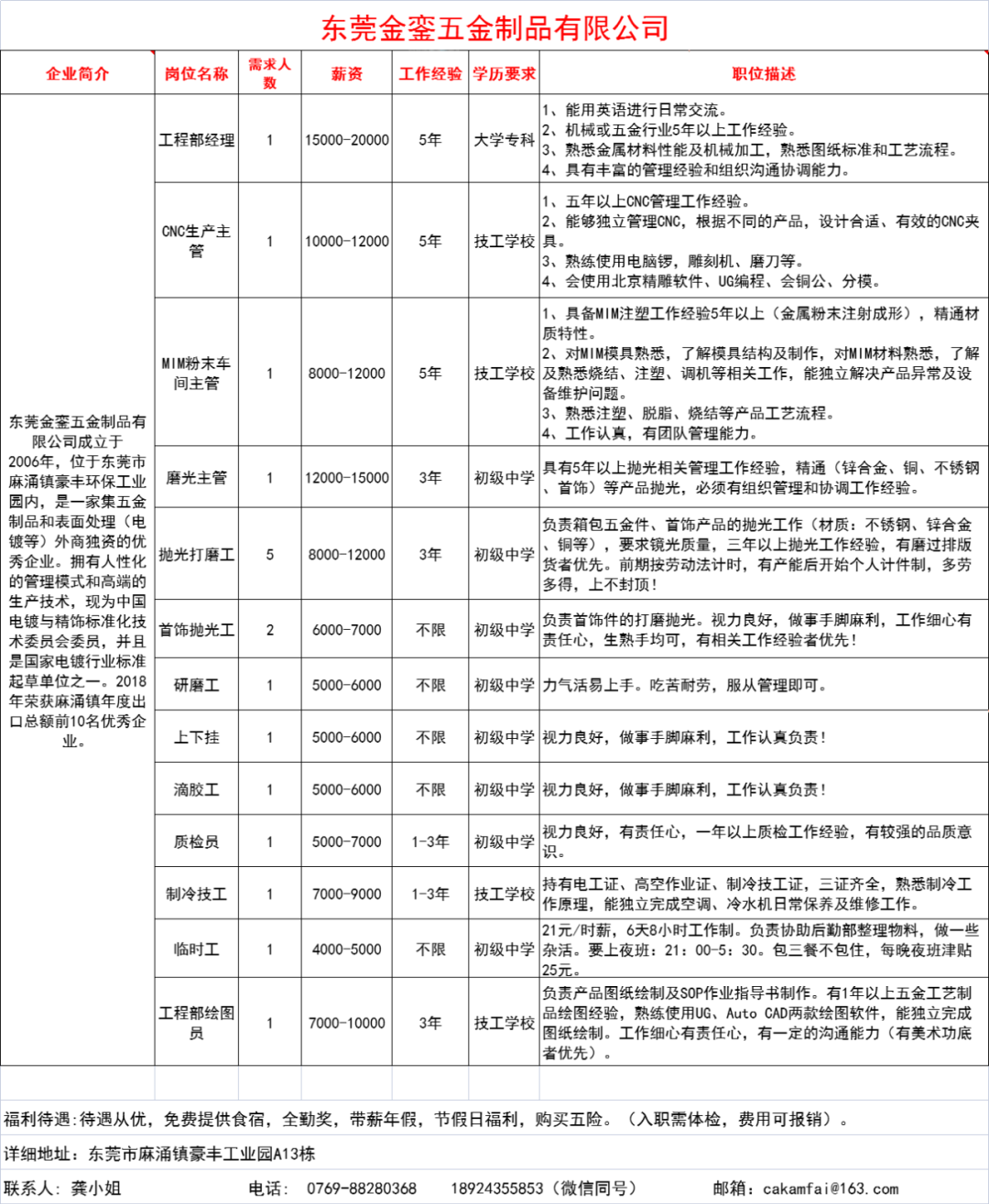 求职者可以投递简历到以下企业邮箱或拨打企业联系电话。