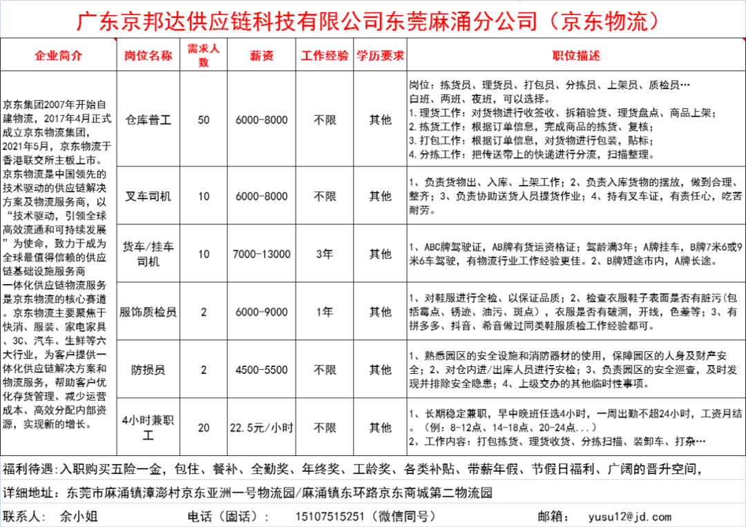 1、广东京邦达供应链科技有限公司东莞麻涌分公司(京东物流)