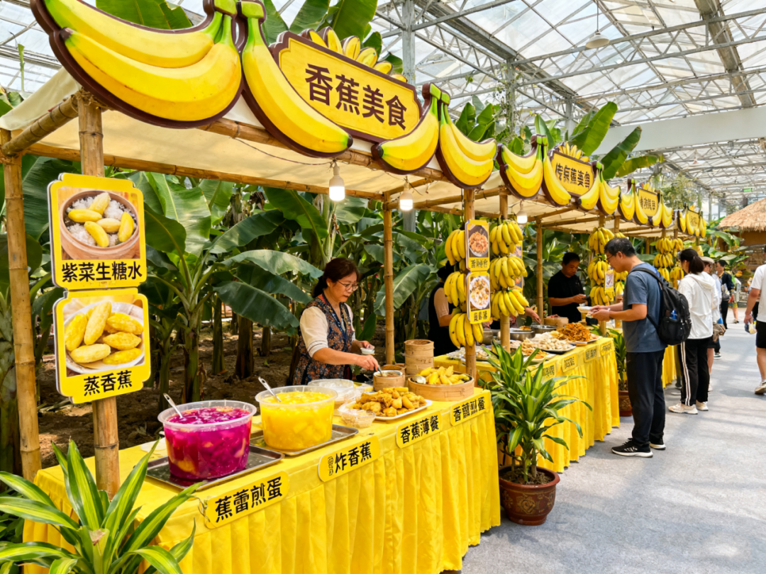 香蕉茶饮、传统小吃、蕉叶编织、IP周边