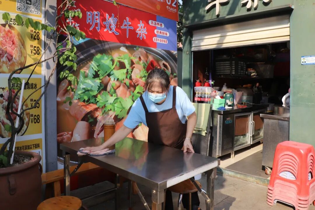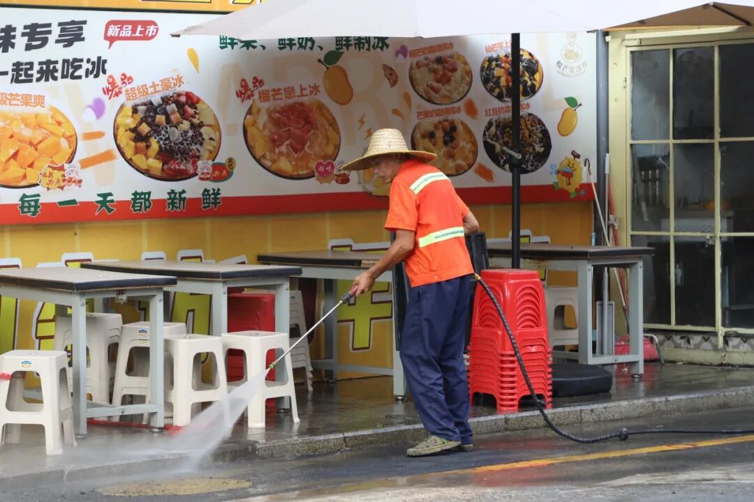 “我们每日坚持落实‘门前三包’,及时清理积水和垃圾,保持环境整洁。”餐饮店主管庄先生,希望通过这些细节,为每一位顾客提供安心、舒适的用餐体验。