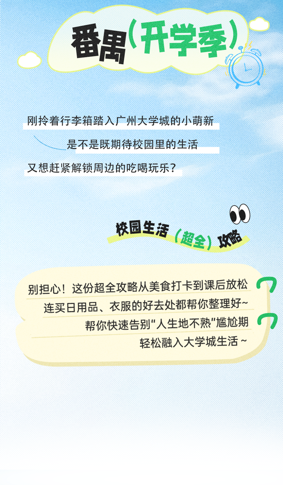 新学期刚开始,广州大学城还有很多小惊喜等着你来发现~快收藏这份攻略,约上刚认识的室友,一起去打卡吧!评论区说说,你最想先去吃哪一家美食,或先逛哪个打卡地?