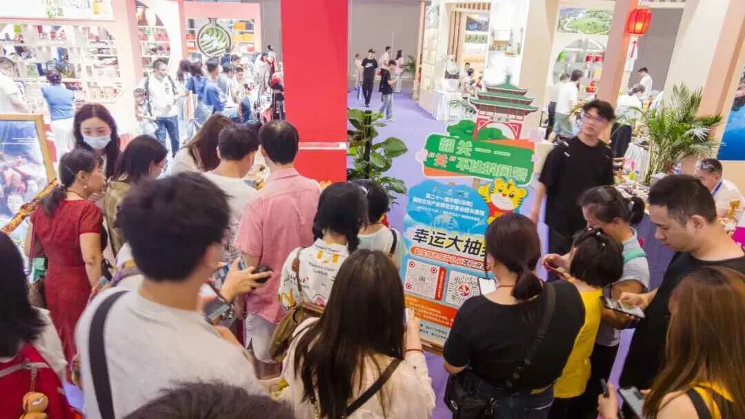 逛展也不能忘了扫码玩抽奖刮刮乐(100%中奖!文创袋、文创打卡本、超萌九龄虎限定徽章任性薅),一边看特色歌舞快闪一边品韶关茗茶!