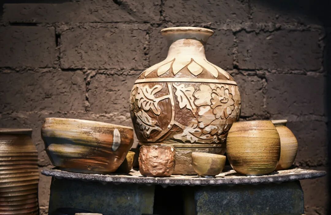 延续千年柴烧古法,每件作品皆独一无二。其釉色绚丽斑斓,具有与“石峡文化”出土原始瓷相似的特征,技艺难度极高,极具收藏价值。
