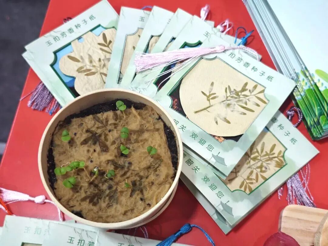 以“自然疗愈”为主题,展出非遗玉扣纸、香草书签、草本茶饮等,提供品茶、闻香、压花书签制作体验,传递绿色经济理念。