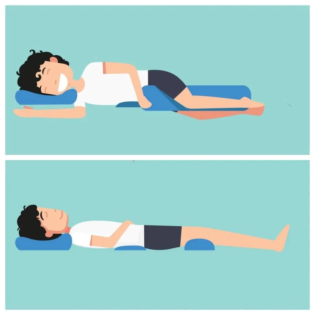 建议侧睡时,一个垫在脖子下,另一个放在两个膝盖中间;仰睡时,一个垫在脖子下,另一个矮的枕头垫在膝盖下面。