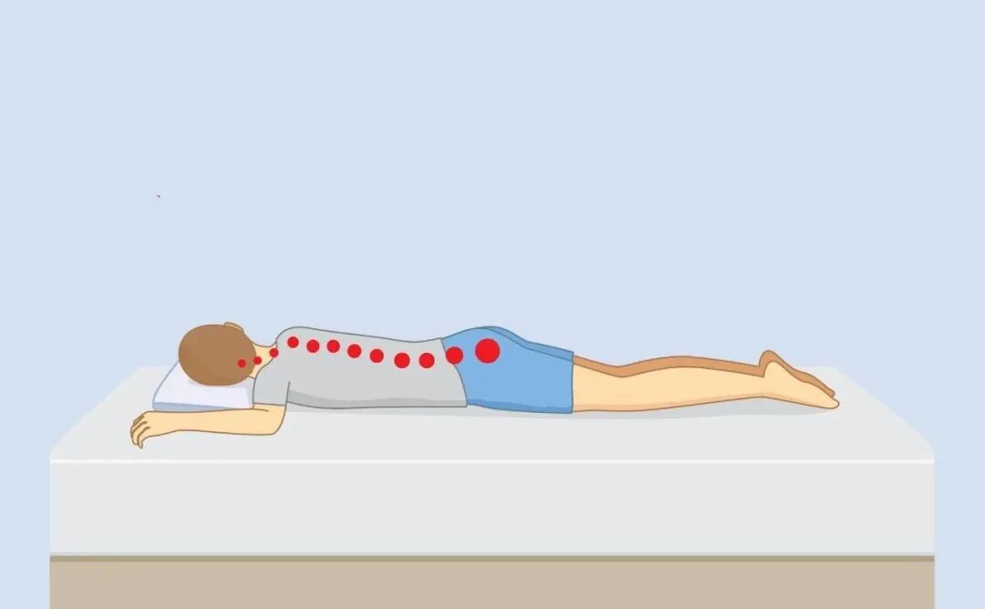 如果总是趴着睡,为保证呼吸顺畅,头颈常偏向一侧,腰椎、脊椎就会长时间处于反弓、扭曲状态,反而使髓核进一步突出,加重不适。