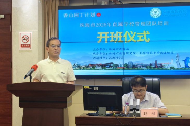 9月12日,香山园丁计划——珠海市2025年直属学校管理团队培训开班仪式顺利举行。本次活动由珠海市教育局主办,市教育研究院与北京师范大学珠海校区共同承办。市委教育工委书记,市教育局党组书记、局长习恩民出席仪式并讲话。全市五所直属学校30余名管理干部参加仪式。
