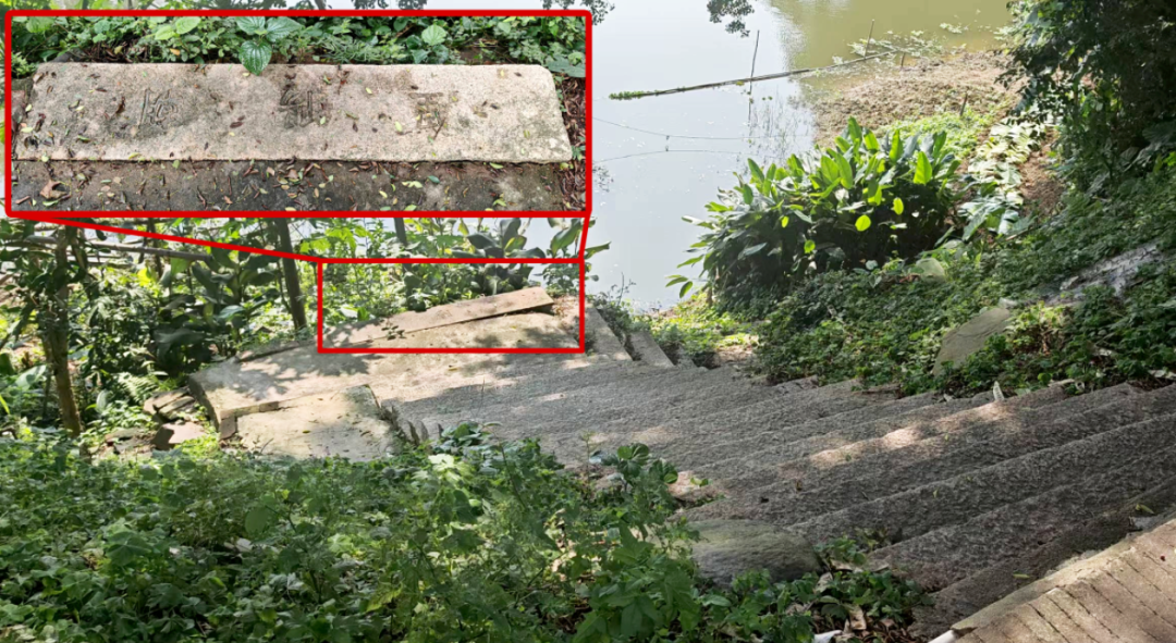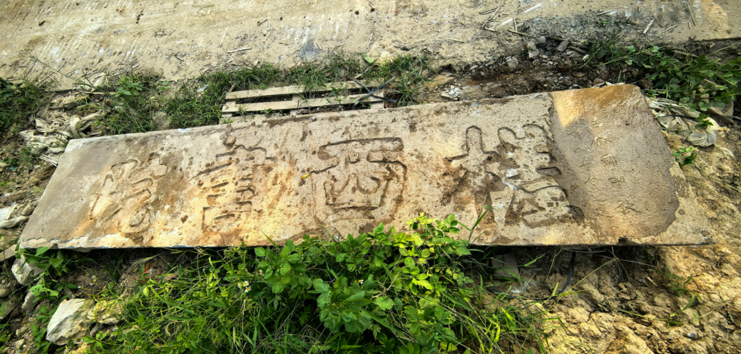 ▲“朝阳里”石匾在五福村的河涌边被发现。图源 朝阳里·湾区中国村项目