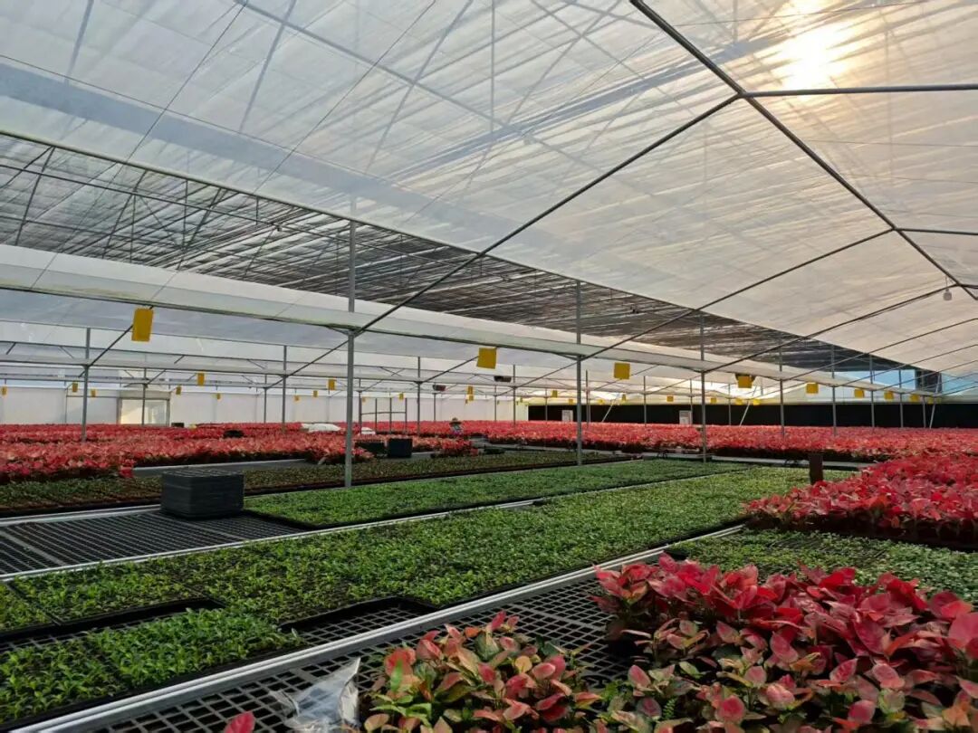 此次调研首站来到瑞岭盆景苗木生产中心。放眼望去,成片的“红如意”特色花卉灿烂绽放。负责人介绍,基地现引入智能育苗和AI创作技术,能够精准育苗、满足市场需求,现生产中心年产出300万株花卉,带动了周边近5000亩花卉种植场所的发展,有效促进创业和增收。