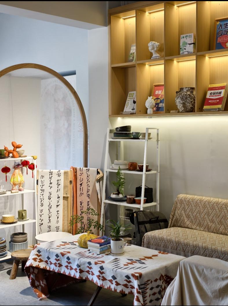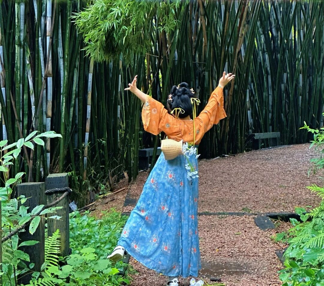这处小家碧玉般的中式庭院,每一处细节都凝聚着女主人的心血——从设计装修到布置,皆为亲手打磨。虽仅有七八个台位与两三个独立空间,却藏满巧思:茅草棚供人闲饮,小榻与秋千让人自在休憩,屋后竹林苍翠、溪声潺潺;二楼专属妆造区更添别致,屋内上百件汉服均为女主人精心挑选积攒。小院早已超越品茶休憩功能,成为传播传统服饰文化、沉浸式体验中式美学的空间,彰显着女性创业的独特光彩与“美丽庭院”的文化内涵。
