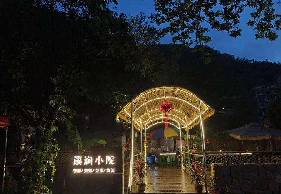 小院位于八哥山溪涧之畔,凉爽溪水潺潺流淌,瞬间让人舒缓紧绷的神经。在钓池旁的躺椅上持竿远眺,享受随缘垂钓的闲适。入夜后,蒸鱼、山水豆腐、白斩鸡等丰盛晚餐上桌,为惬意时光画上圆满句号。这里是人与自然对话的绝佳场所,而小院的生机与惬意,正是支持女性发挥所长、共建“美丽庭院”的生动体现。