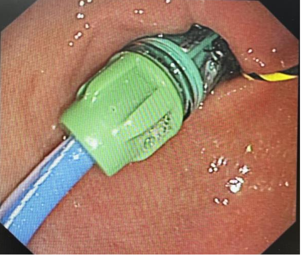 5月21日,小李接受了手术。医生通过胃镜将一个特殊的支架精准放置在她的十二指肠和空肠上段。支架展开良好,黏膜完好无损,整个过程仅用不到10分钟。这个支架就像在消化道内搭建起一座精巧的“代谢立交桥”,巧妙地改变了食物的流向。