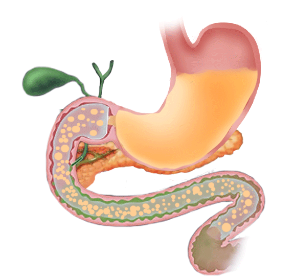 这项技术的原理听起来很神奇,但实际上非常巧妙。医生通过胃镜,将一个长约60厘米的生物膜管支架放置在十二指肠和空肠上段,如同在消化道内修建了一条“代谢捷径”,使食物经此通道直接进入小肠中段,隔绝食糜和肠粘膜,减少小肠绒毛上皮细胞对营养的吸收。而胆汁和胰液则在支架外和肠壁之间流动,至膜管末端,两者才开始接触和混合进行消化,从而实现可控的吸收不良效果。