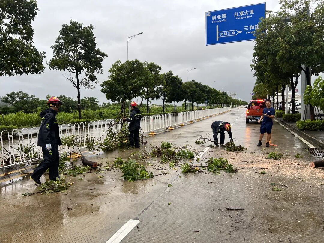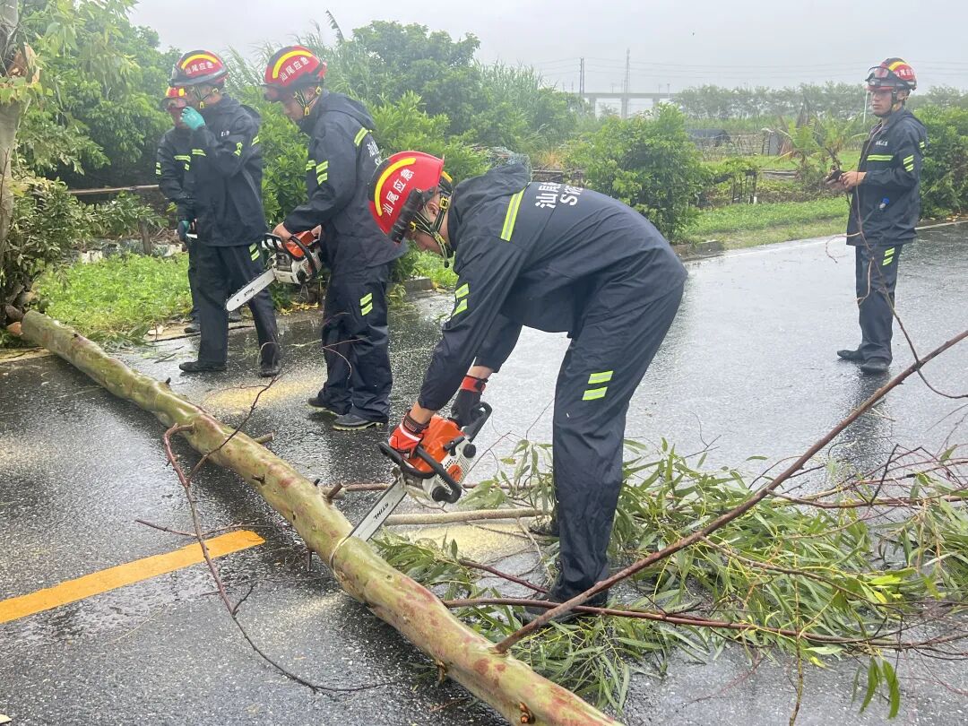 9月19日下午,市应急救援支队派出两路人马分别前往市城区东岳庙青新周边、红草镇等受灾地点开展抢险救援处置工作,共出动32人,携带20把油锯、20把砍刀和排涝相关装备。救援人员及时处置倒伏树木和开展道路清障,并在周边道路进行巡查,确保群众出行安全。