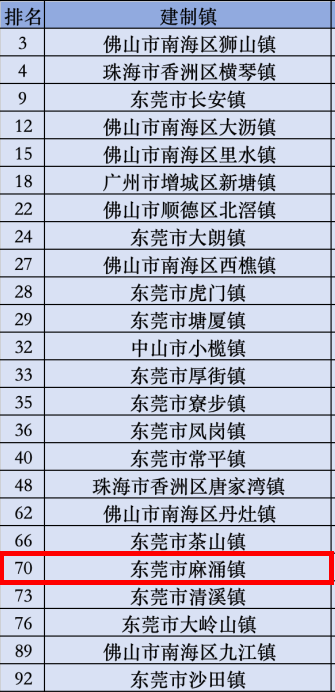 麻涌排名全国第70位