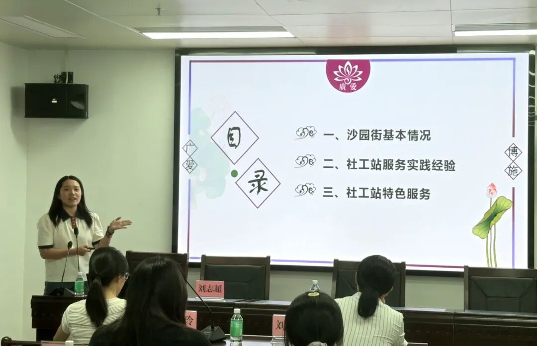 刘志超副站长作为优秀社工站代表,以“沙园街‘双百工程’社工服务站服务实践经验”为主题进行了分享。她详细介绍了沙园街社工站在党建引领下构建“五社联动”机制、打造“慈吸力·公益圈”计划、培育社区志愿者队伍以及开展困难群众和特殊群体精准关怀等方面的创新做法和服务成效,为参会人员提供了丰富的、可借鉴的社区服务模式与实务操作经验。