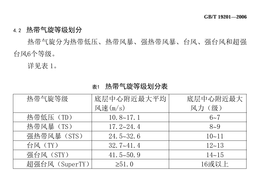 GB/T 19201-2006《热带气旋等级》