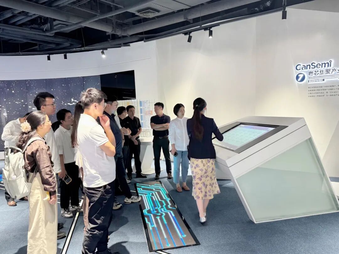 与会代表首先参观了粤芯的科技化展厅,详细了解了粤芯的发展历程、核心技术、业务战略及多元化应用生态等。随后深入生产线,实地观摩了晶圆制造自动化工厂的运行实况。通过参观粤芯样板,与会代表对智能制造产业数字化转型的落地路径与优势作用有了更为直观和深刻的理解。