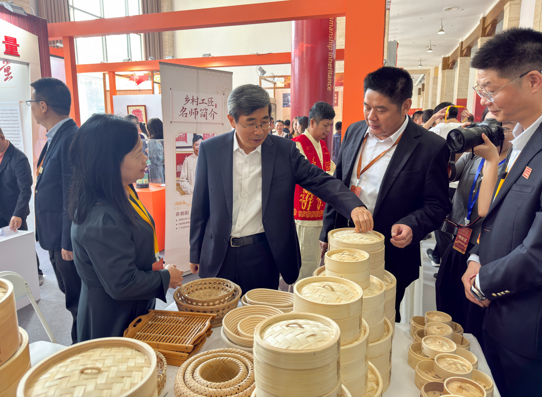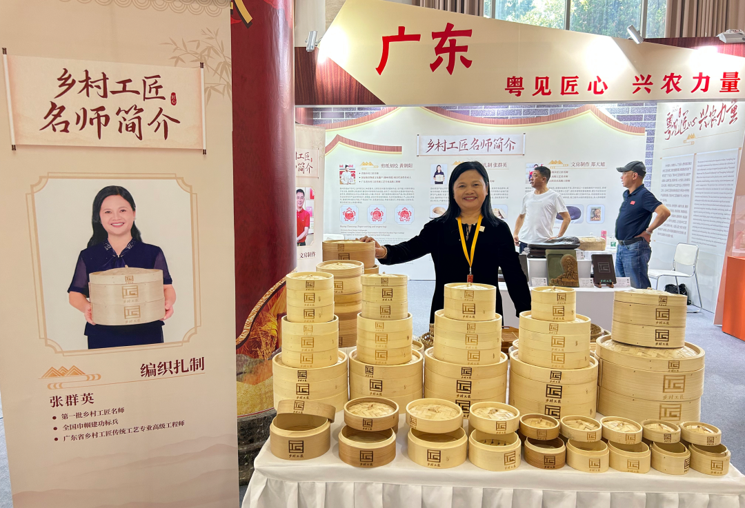 在广东省“粤见匠心 兴农力量”展区,泗纶蒸笼的展示台成为焦点。全国第一批乡村工匠名师张群英作为广东代表带来泗纶蒸笼非遗技艺的展示,更有她亲手制作的蒸笼成品与系列竹编制品,吸引得观众频频驻足欣赏,呈现了编织技艺的精妙,让非遗技艺在国际交流平台上展现出鲜活的当代生命力。