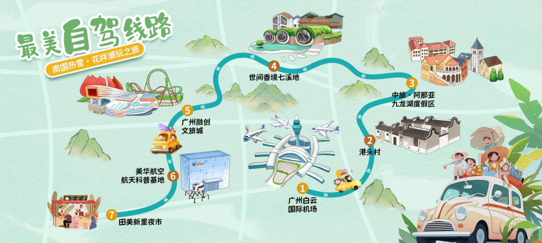 线路串联花都区广清穿越绿美观花骑行道(2024年中国骑行地图精品骑行路线)、中旅·阿那亚九龙湖(4A级景区)、广州融创文旅城(国家体育旅游示范基地、4A级景区)、芙蓉旅游度假区、北迹露营1号(国家5C级自驾车旅居车营地)、御盛国际马术度假区(3A级景区)、等,突出冰雪主题,融合滑雪、娱雪、户外登山、徒步、骑行、马术、高尔夫、卡丁车、主题游乐、生态休闲、康养度假、房车帐篷露营、研学等,实现体育与旅游强强联动、相互依托,充分满足多层次游客动静相宜、欢乐相融的别样体育旅游体验需求。