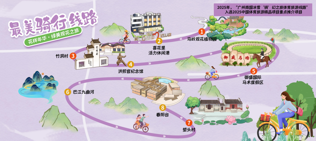 广州南国冰雪“骑”幻之旅全长45公里,整合了花都生态文旅资源和特色体育资源,打造粤港澳大湾区体育旅游新名片。