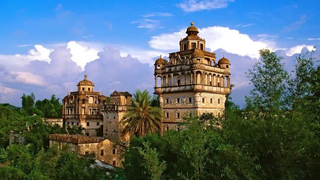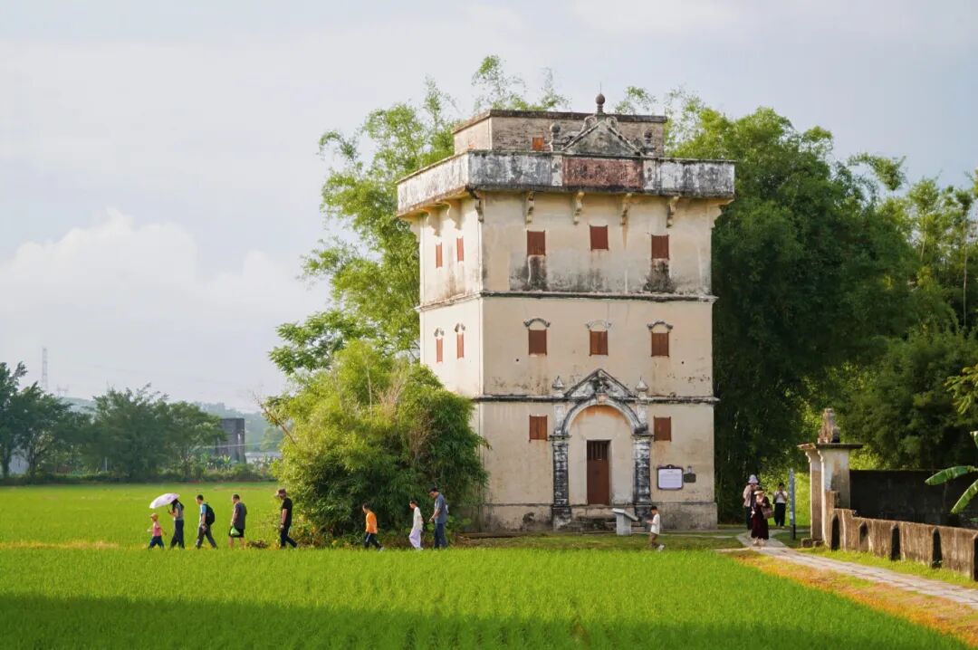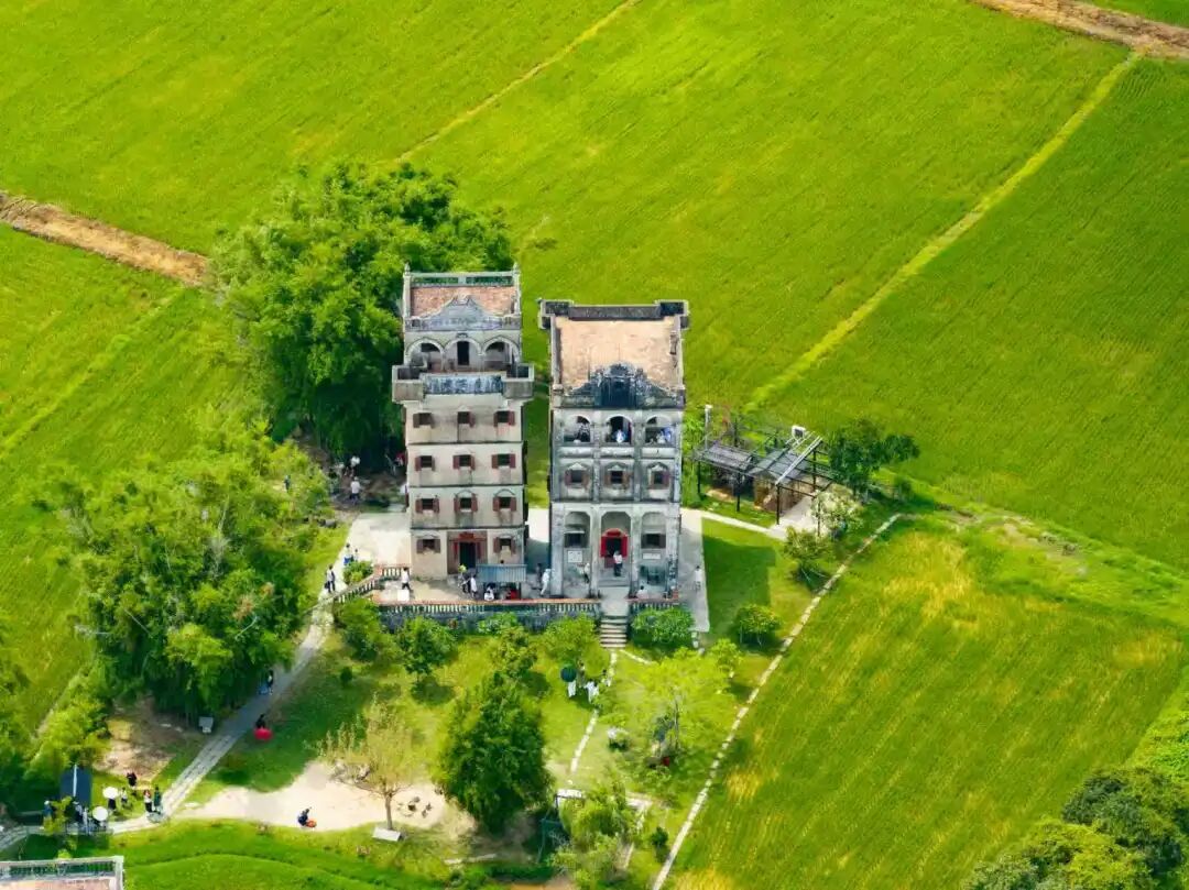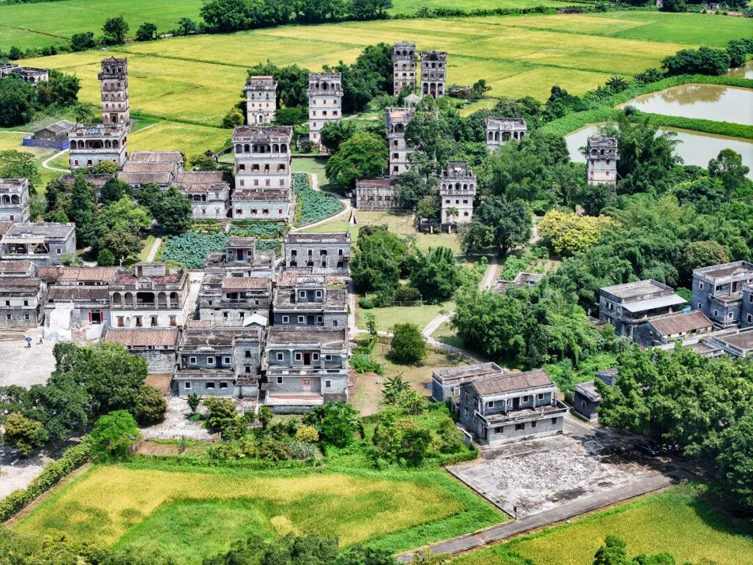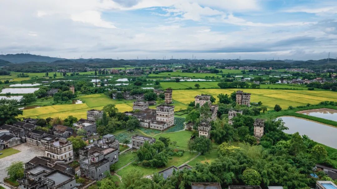 世界文化遗产碉楼群落与无垠稻田、古朴村落交织