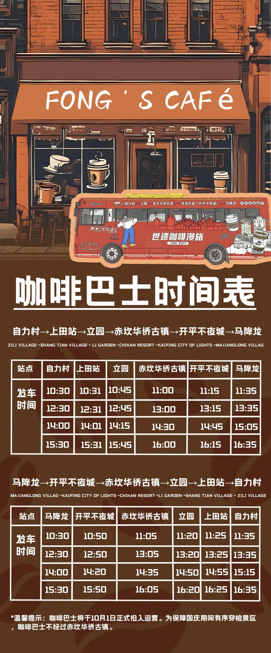 开平碉楼景区匠心打造了“观光咖啡巴士”