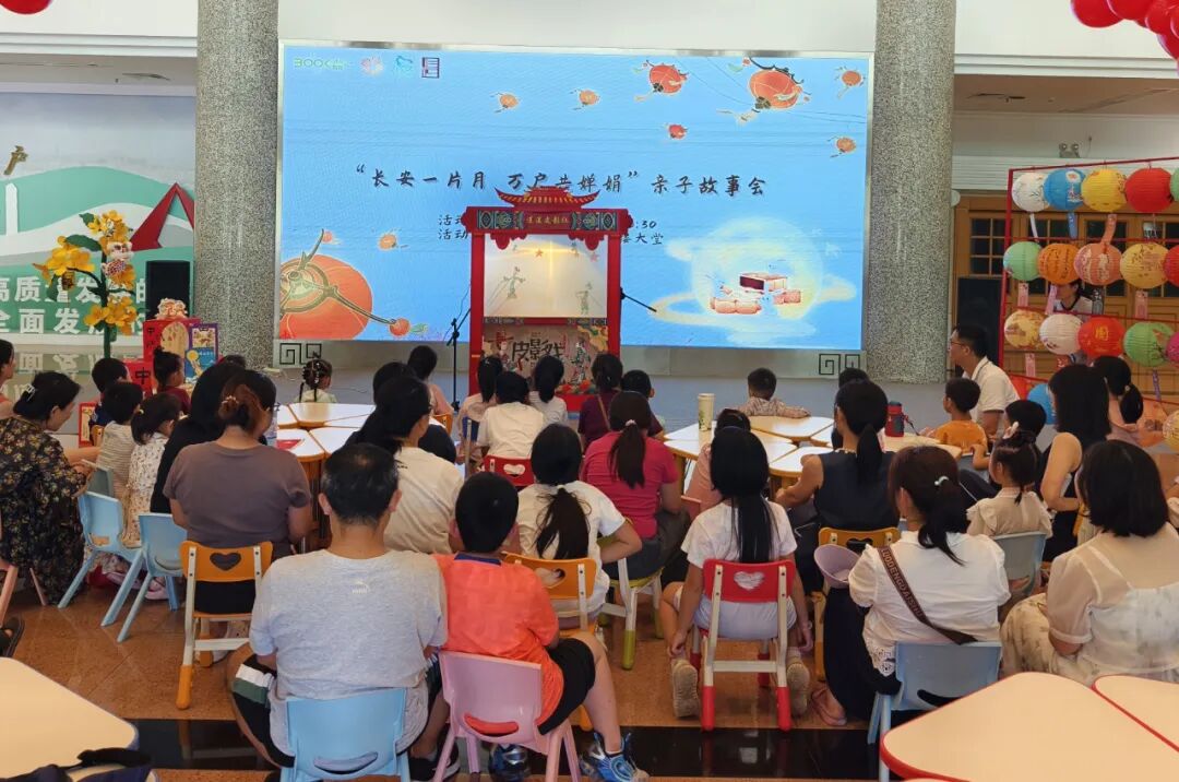 10月1日下午,长安镇图书馆一楼大堂灯火璀璨、童声飞扬,“长安一片月 万户共婵娟”亲子故事会在此温情启幕。活动以中秋文化为核心、亲子互动为纽带,吸引众多家庭踊跃参与,在书香中共赴一场穿越之旅。