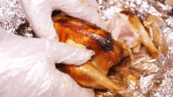 随后用锡纸将鸡牢牢包裹