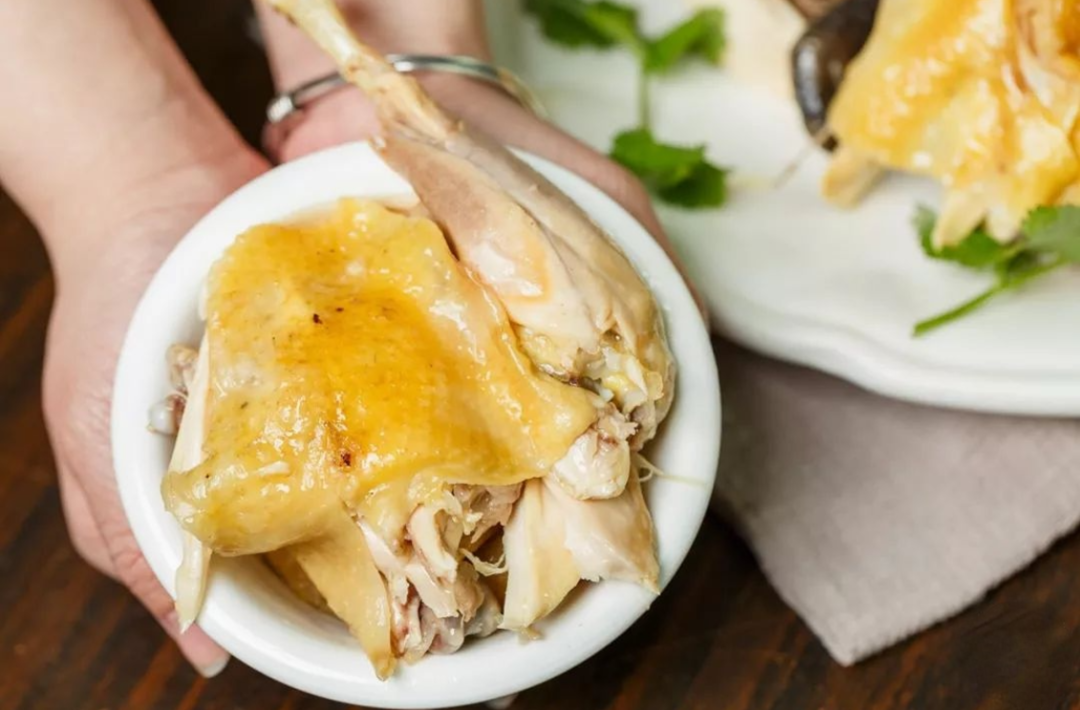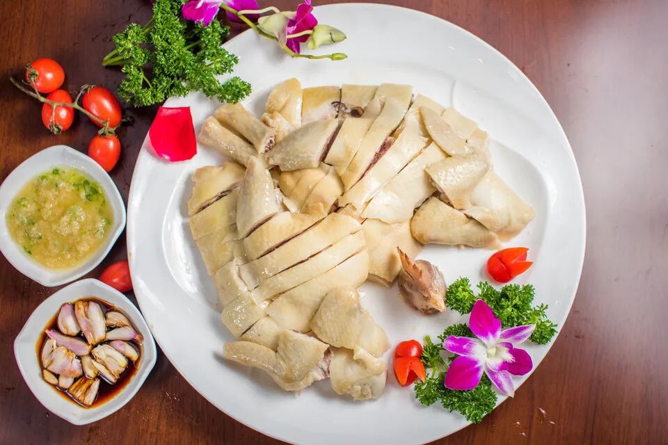 刚出锅的白切胡须鸡