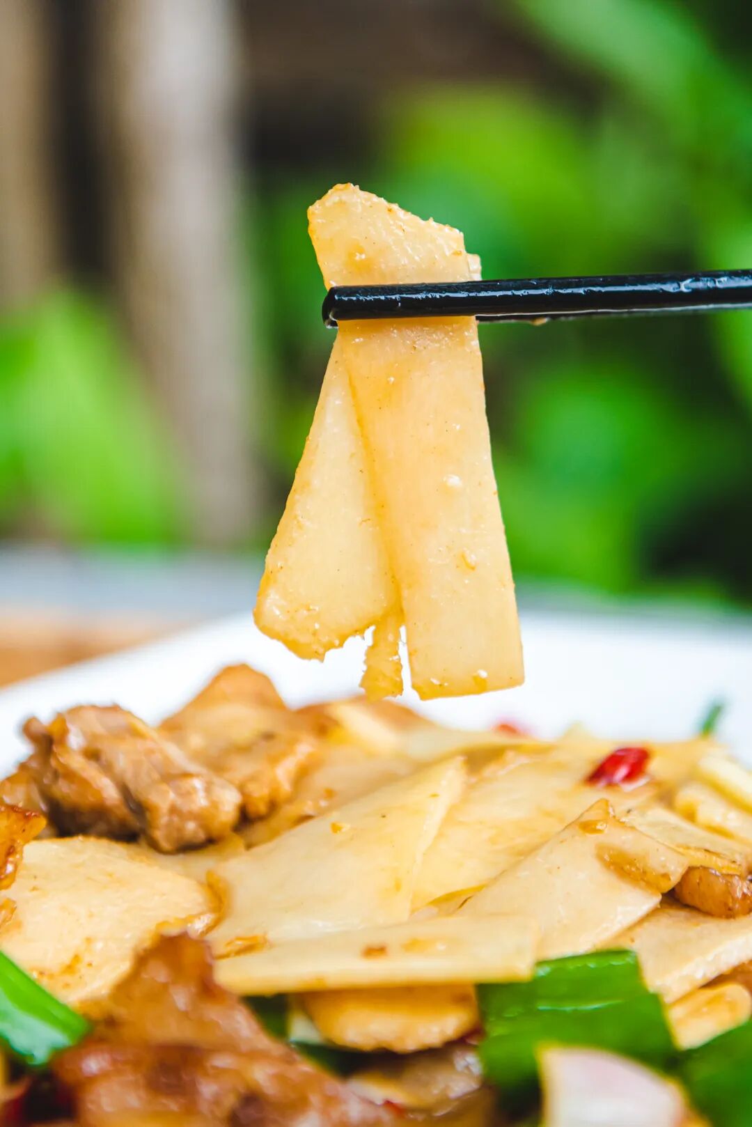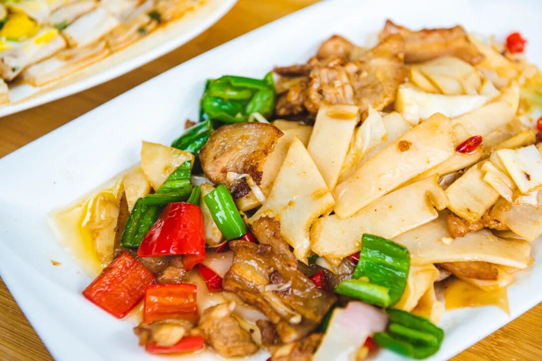 竹笋炒腩肉选用南昆山鲜春笋与五花肉