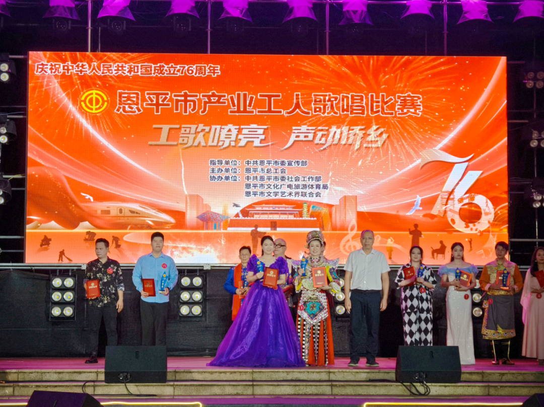 10月2日晚,“工歌嘹亮 声动侨乡”——庆祝中华人民共和国成立76周年恩平市产业工人歌唱比赛决赛,10多名晋级选手轮番登台放声高歌,以歌声庆祝新中国成立76周年,也为广大观众送上一场精彩的音乐盛宴。