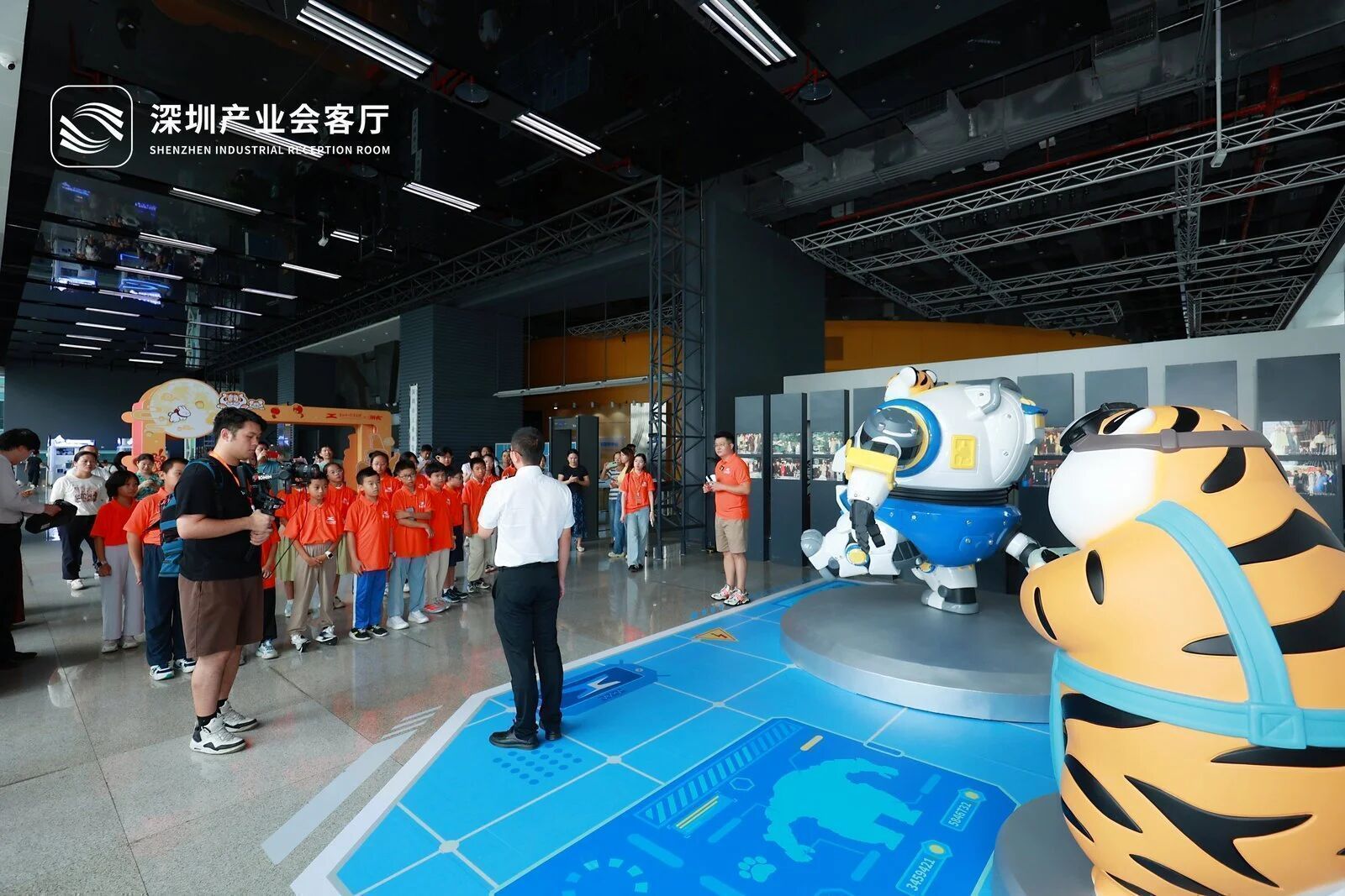 在深圳产业推介官带领下,参加“十一黄金周深圳创造之旅”的亲子家庭齐聚市民中心内的深圳市工业展览馆,前厅萌态的“胖虎号”工业机甲敦厚又充满科技感,瞬间吸引了孩子们目光,引来大家纷纷打卡合影。
