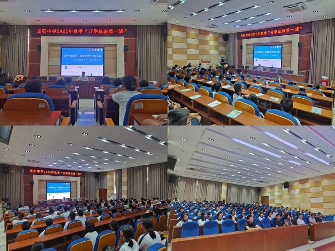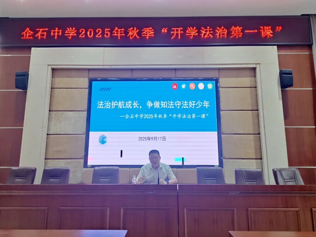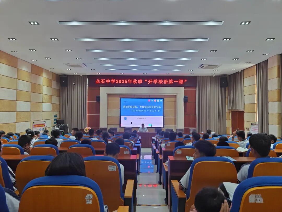 为进一步增强青少年学生法治观念,守护未成年人健康快乐成长,营造良好的校园法治氛围,9月17日下午,企石镇党委副书记、法学会会长张旭健走进企石中学,受聘为该校法治副校长,并以“法治护航成长,争做知法守法好少年”为主题为初一年级160余名学生讲授秋季“开学法治第一课”。